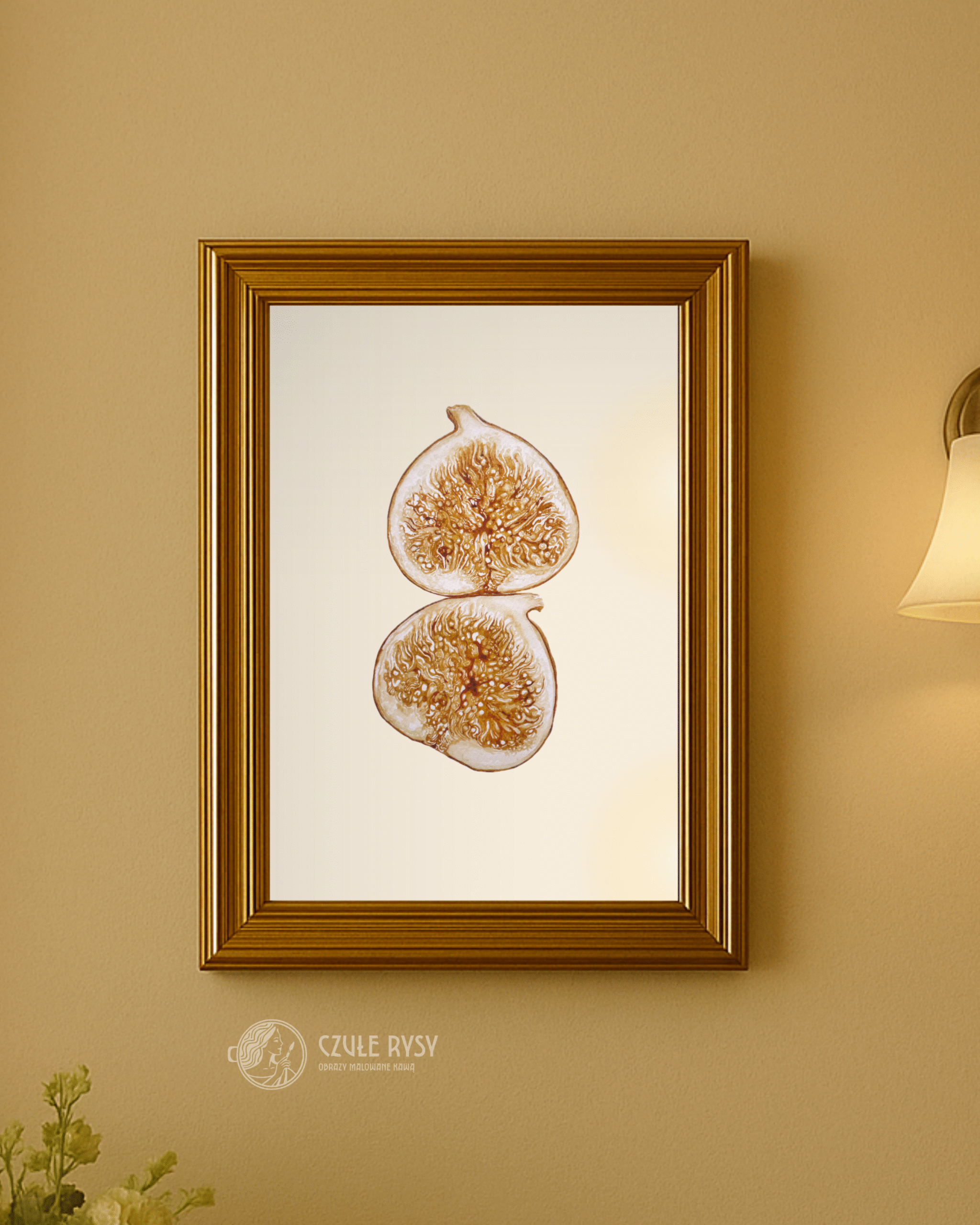 - Emocja: Spójrzmy na figi. Czy czasem nie próbują przemycić do naszych wnętrz barokowych ornamentów, by dyskretnie zdobiły ciasta i desery? Figi zasługują na uwagę i zachwyt, to jedne z piękniejszych owoców. Dajmy im miejsce na naszych ścianach, by ich kawowy przekrój mógł przypominać o pięknie nie tylko w sezonie figowym.