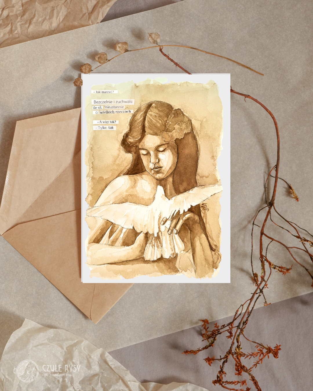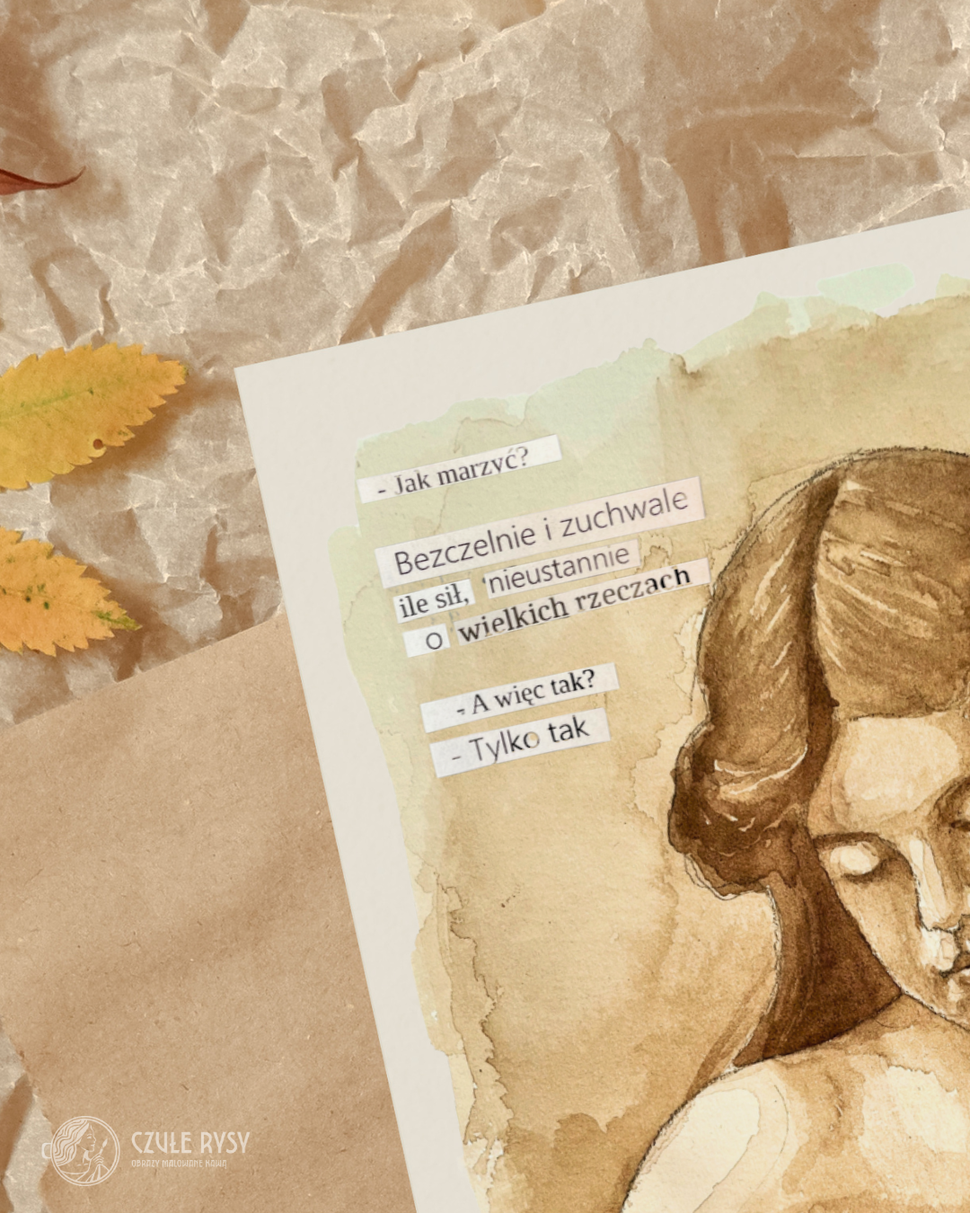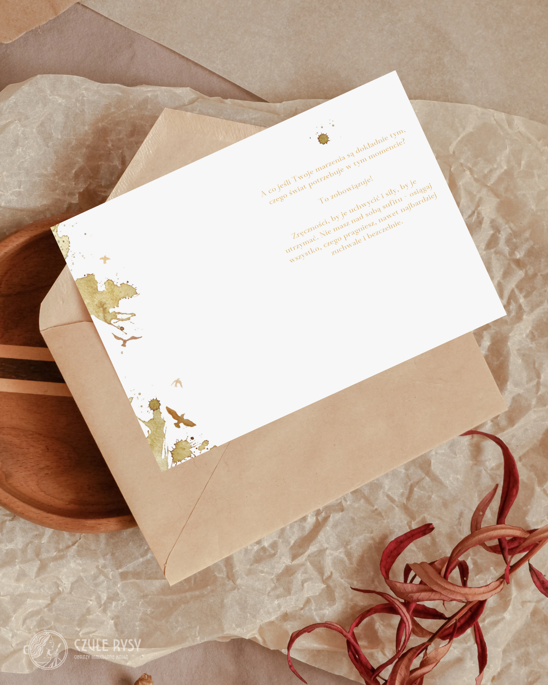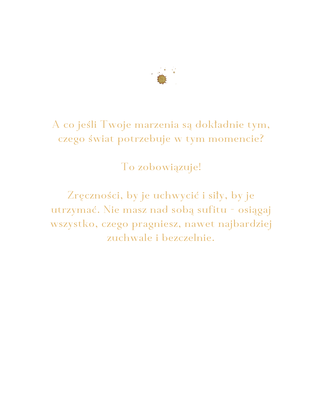Kawową kartkę można (a nawet trzeba!) oprawić. Traktuje ona o wartościach uniwersalnych i niezwykle ważnych. Może być nie tylko mini obrazem i ozdobą we wnętrzach, ale przede wszystkim przypomnieniem o tym, by marzyć. Marzyć bezczelnie i zuchwale!