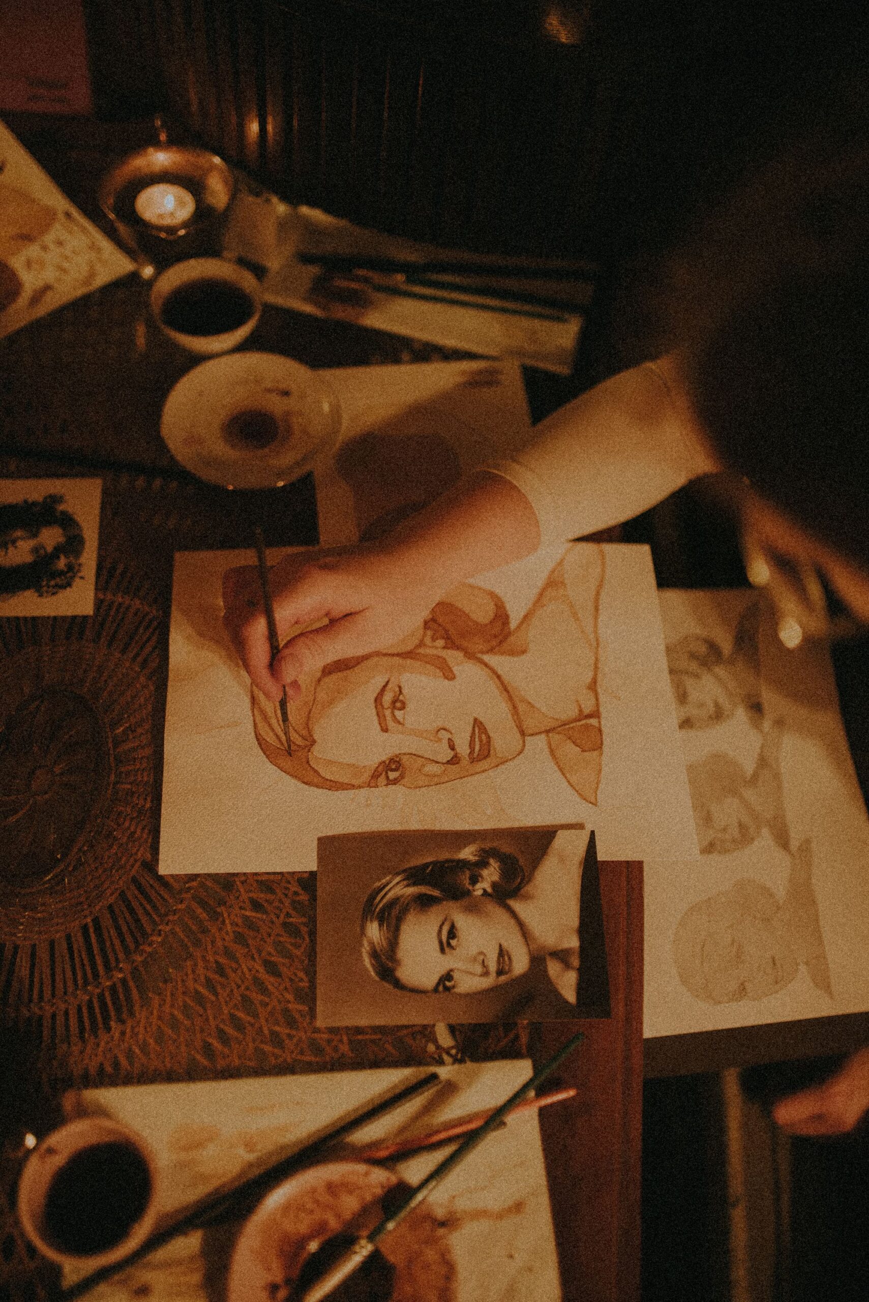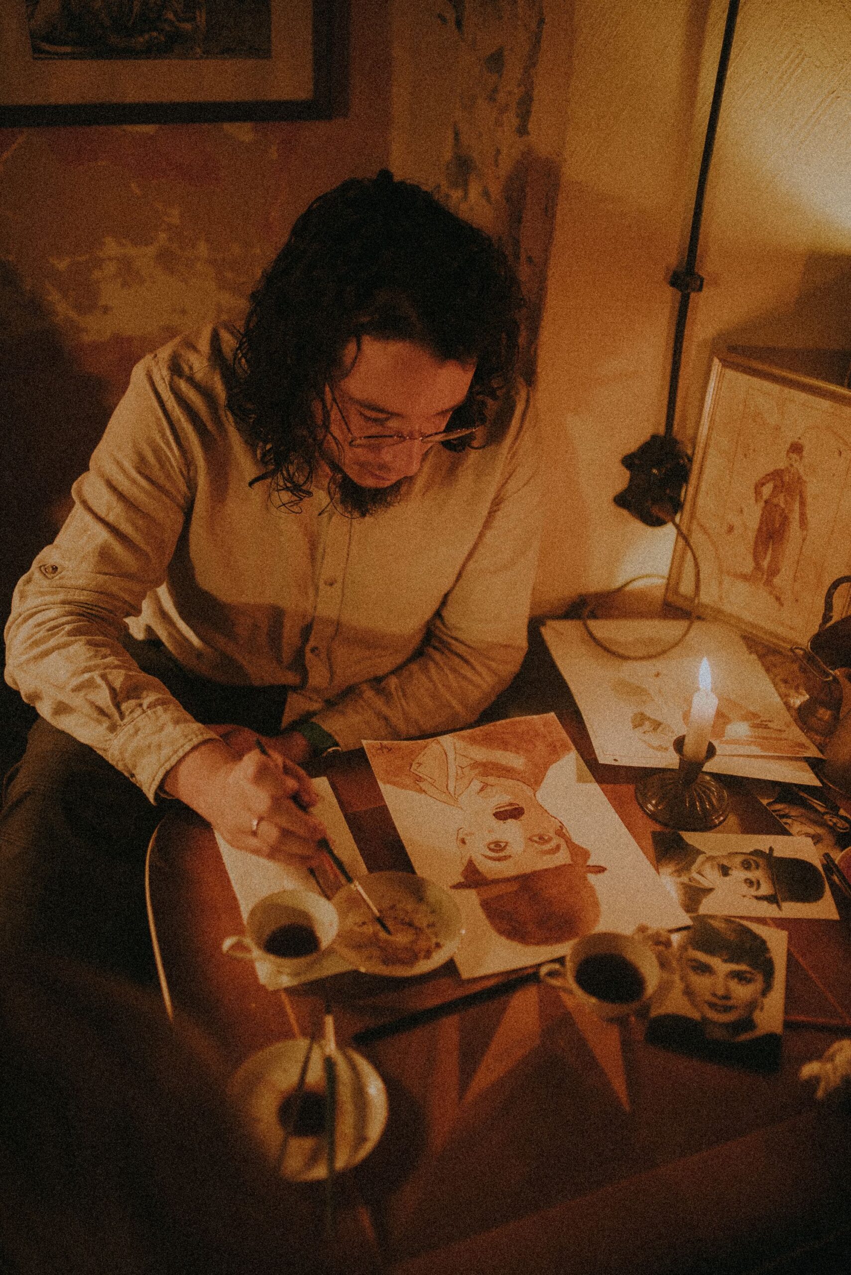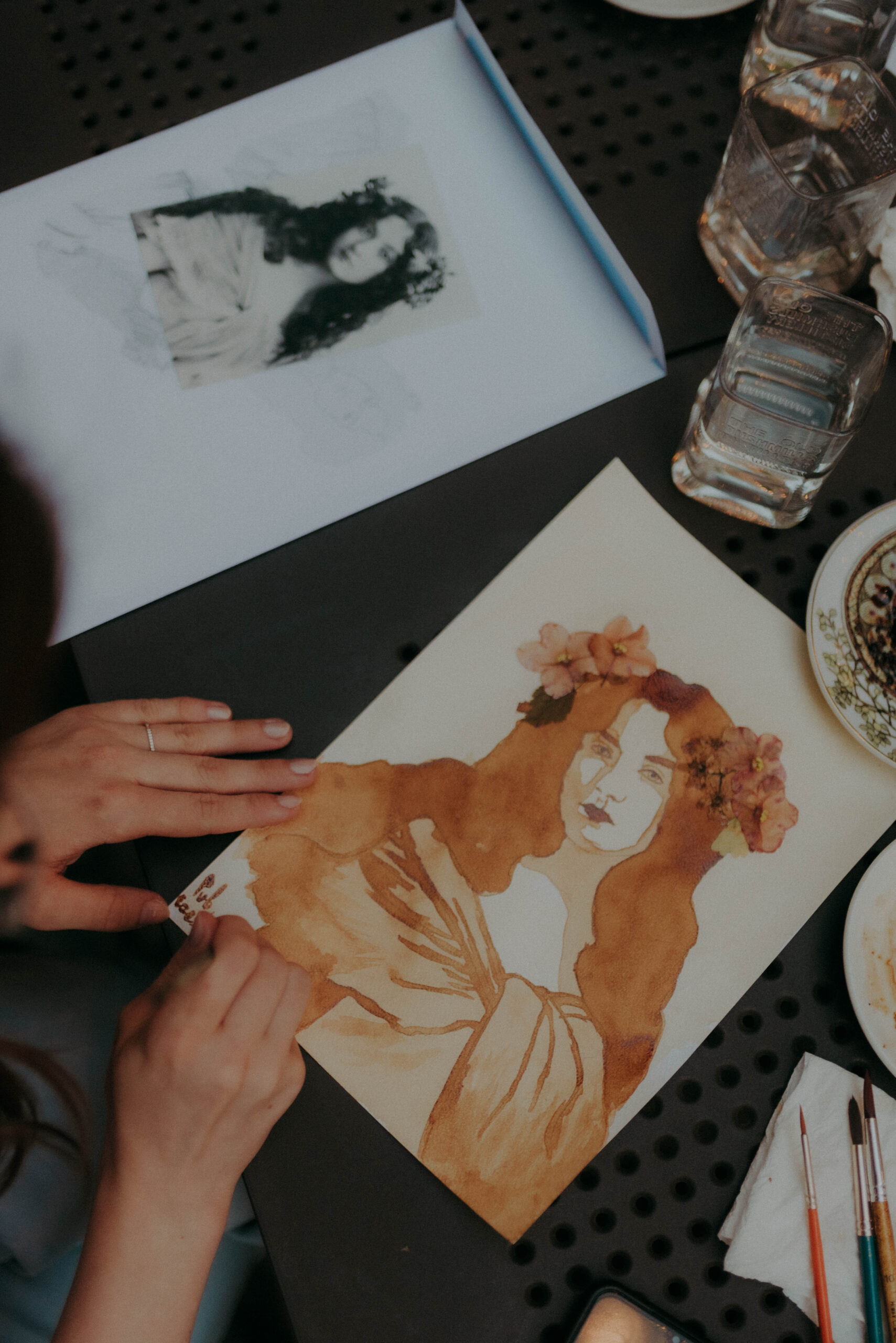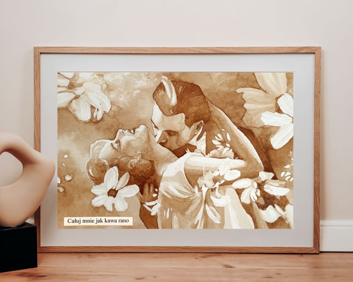 Zaprojektuję Twoją kartę menu z obrazami namalowanymi kawą, przygotuję grafiki na Twoje etykiety lub zaopatrzę Twój lokal w plakaty z kawowymi ilustracjami.